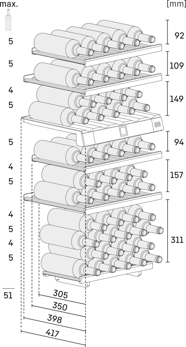Оптимальная влажность воздуха – это один из важнейших критериев для правильного хранения вин. Это позволяет сохранить эластичность пробок и предотвращает их высыхание. Чтобы пробка не высыхала, бутылки следует хранить в горизонтальном положении. Благодаря постоянно поддерживаемой влажности 50 % винные шкафы создают идеальные условия для хранения вина. Влажность воздуха в винных климатических шкафах может по потребности регулироваться при помощи кнопки вентиляции.