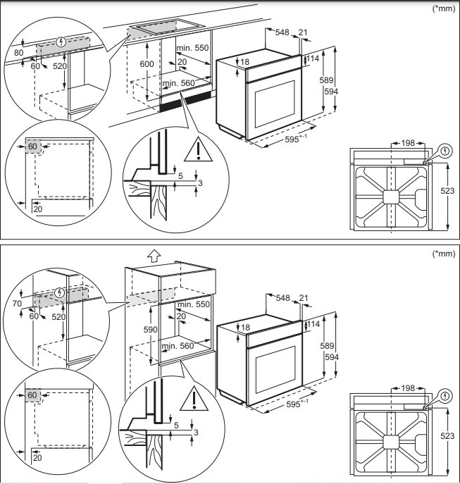 Размеры ниши для встраивания (В х Ш х Г), см
