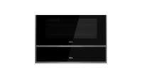 • Стеклянная чёрная передняя панель с обрамлением из нержавеющей стали с защитным покрытием от следов пальцев