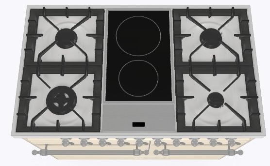 2 индукционные, 4 газовые, 1 Dual конфорка