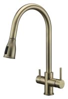 Смеситель LANGE оснащен функциями подключения фильтра питьевой воды, выдвижения излива и двумя режимами подачи водопроводной воды: струя и душ.